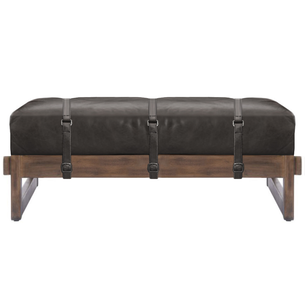 Банкетка Duncan винтажная черная кожа Черный Коричневый в Твери | Loft Concept