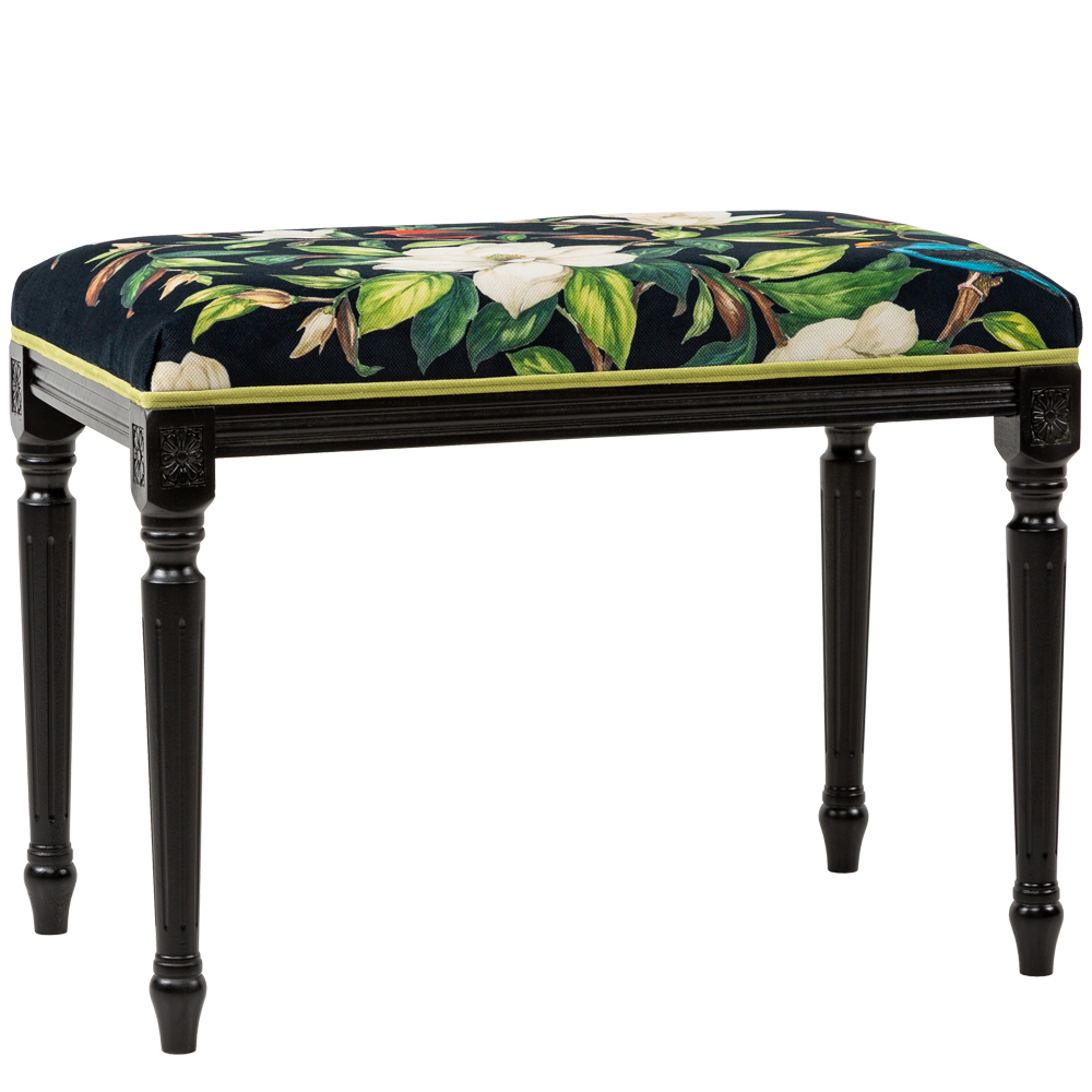 Банкетка из натурального бука черная с изображением птиц и цветов Blooming Birds2 Черный Мульти в Твери | Loft Concept