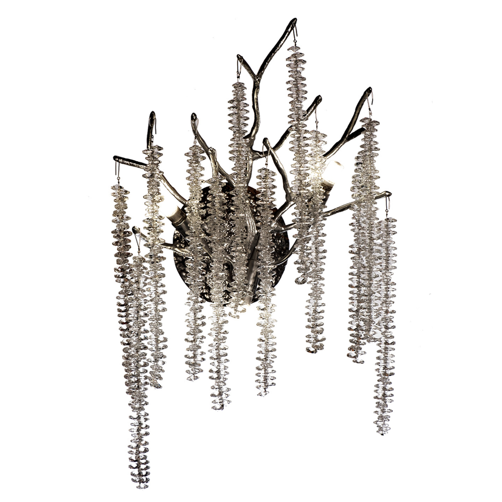 Бра на ветвистым серебрянном каркасе со стеклянными подвесами Raceme