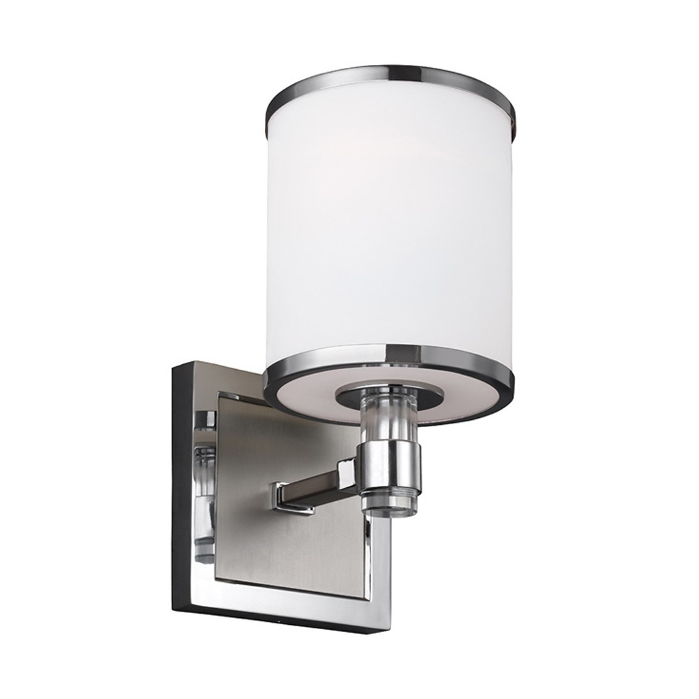 Бра цвета хром с белым цилиндрическим стеклянным плафоном Feiss