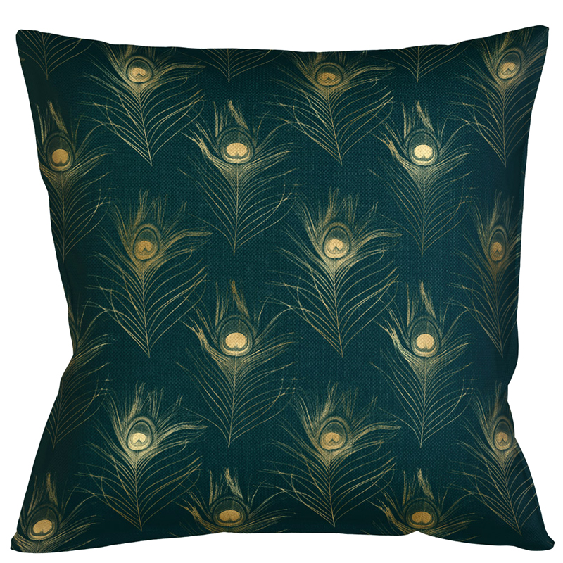 Декоративная подушка c принтом перо павлина Magic Feathers Изумрудная Изумрудный Золотой в Твери | Loft Concept