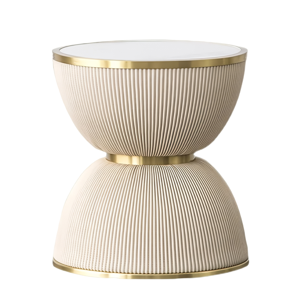 Дизайнерский журнальный стол фактурный с круглой белой столешницей Luler Бежевый Золотой Белый в Твери | Loft Concept
