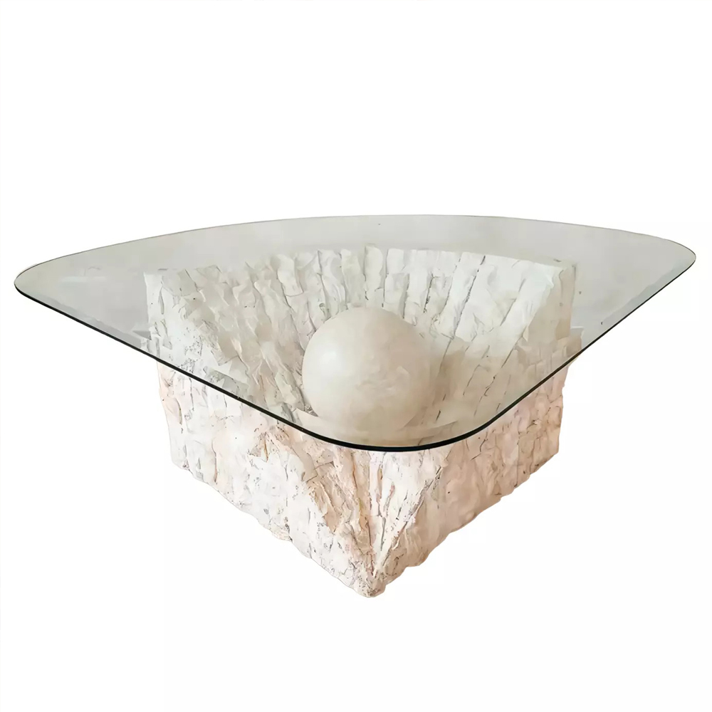 Дизайнерский журнальный стол в виде раковины с жемчужиной под прозрачной столешницей Fahin
