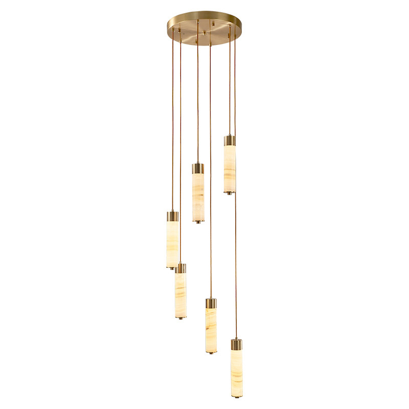 Каскадный Cветильник 6 подвесок из натурального мрамора Marble Ring