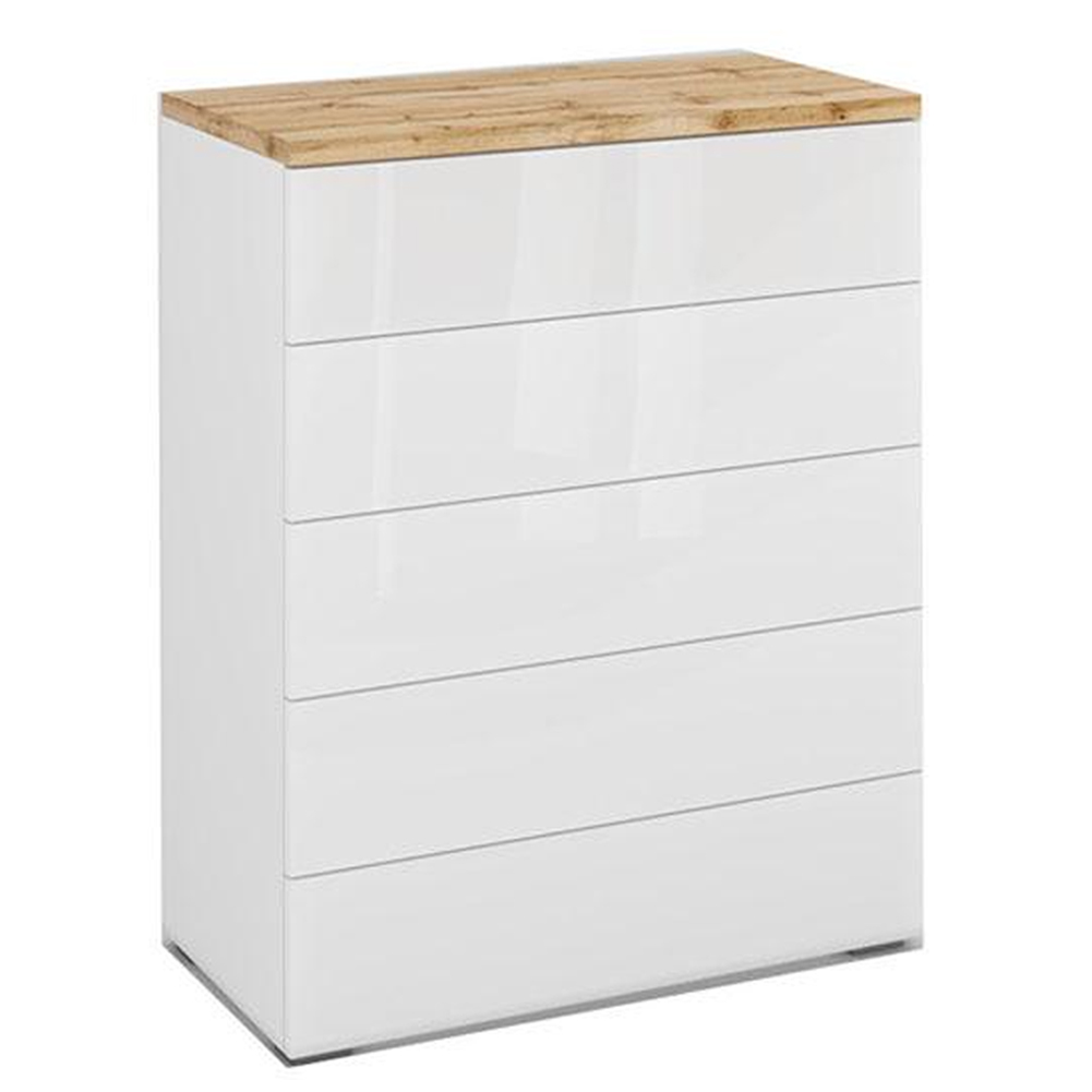 Комод с белым глянцевым фасадом с 5-ю ящиками Grace of Furniture  Глянцевый белый Древесина в Твери | Loft Concept