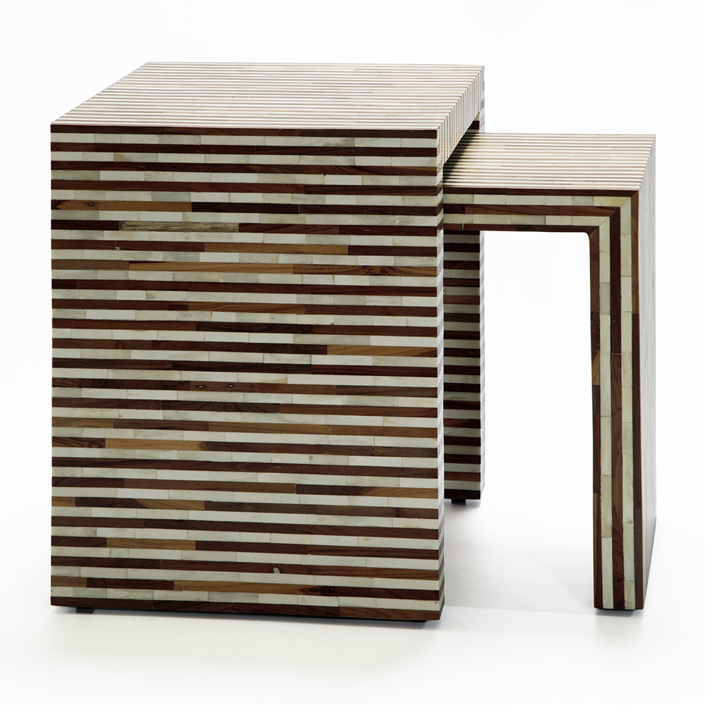 Комплект приставных столиков Stripes Set of tables Beige ivory ( слоновая кость ) Коричневый в Твери | Loft Concept