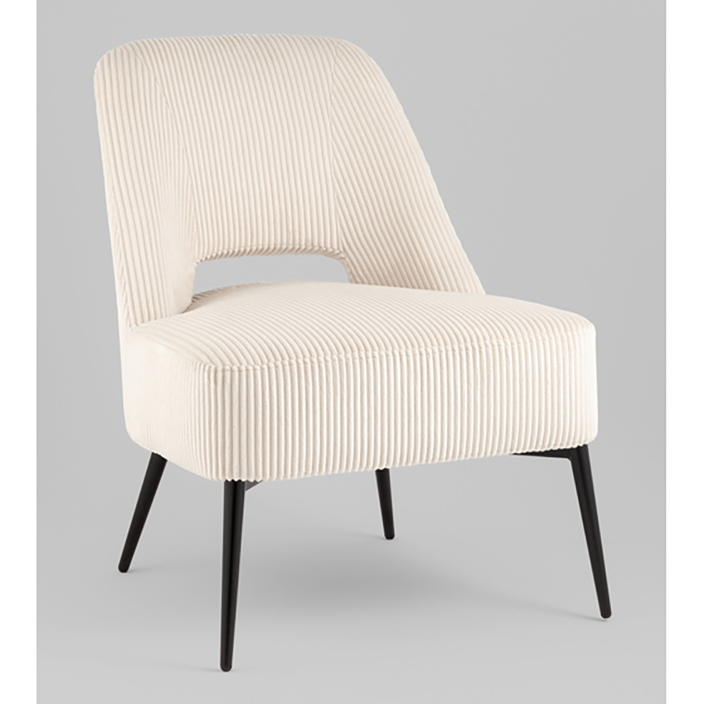 Кресло лаунж Бостон велюр рельефный молочный на черных ножках