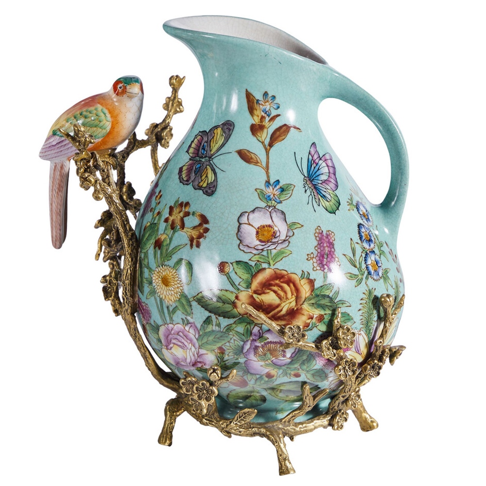 Кувшин с птичкой и  цветочным рисунком Blue Garden Голубой Бронза Мульти в Твери | Loft Concept
