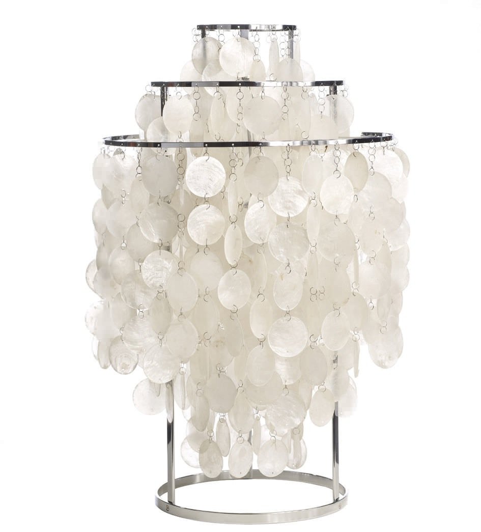 Напольная лампа Fun 1TM создана знаменитым дизайнером Вернером Пантоном в 1964 году. Каркас лампы изготовлен из нержавеющей стали и имеет три кольца разного диаметра, на которые подвешены пластины их настоящих морских ракушек, обработанных соответствующим образом. Пластины в свою очередь скреплены металлическими кольцами.