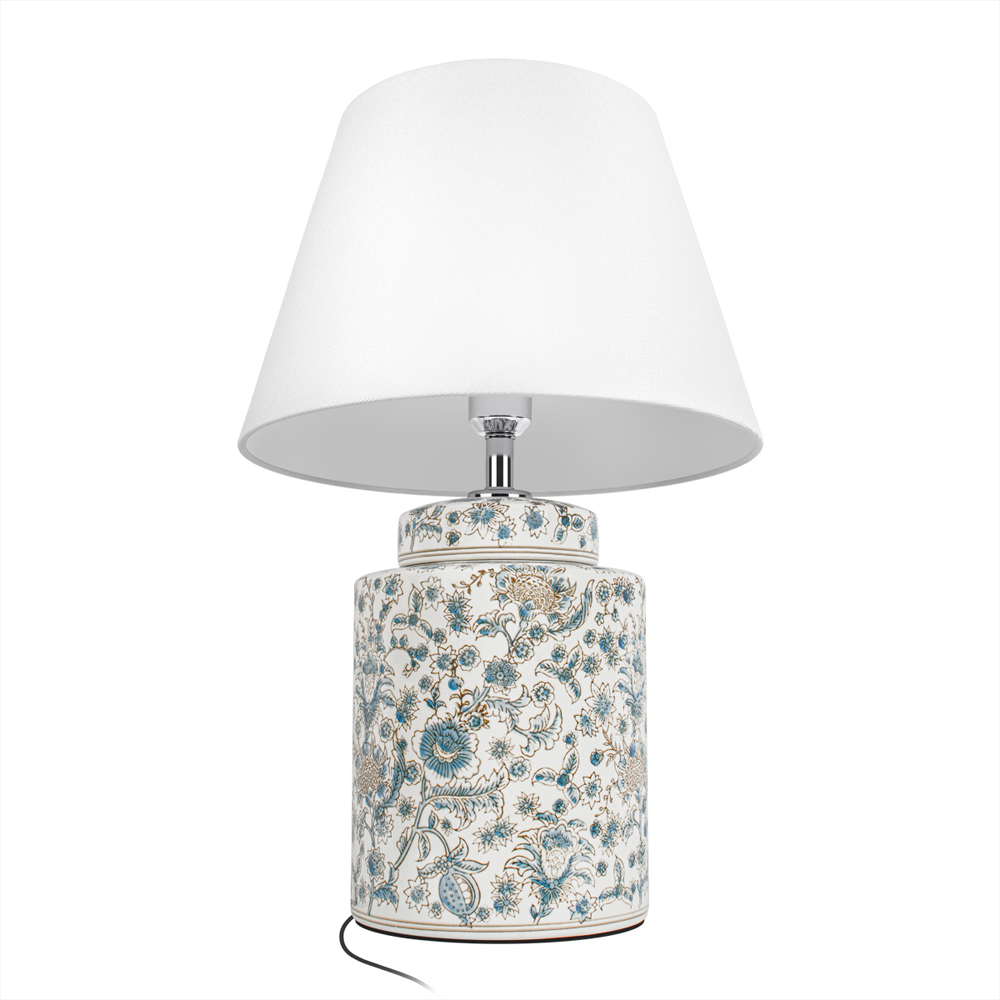 Настольная лампа цилиндрическая с цветочной росписью Lamp Flower Painting Белый Синий в Твери | Loft Concept