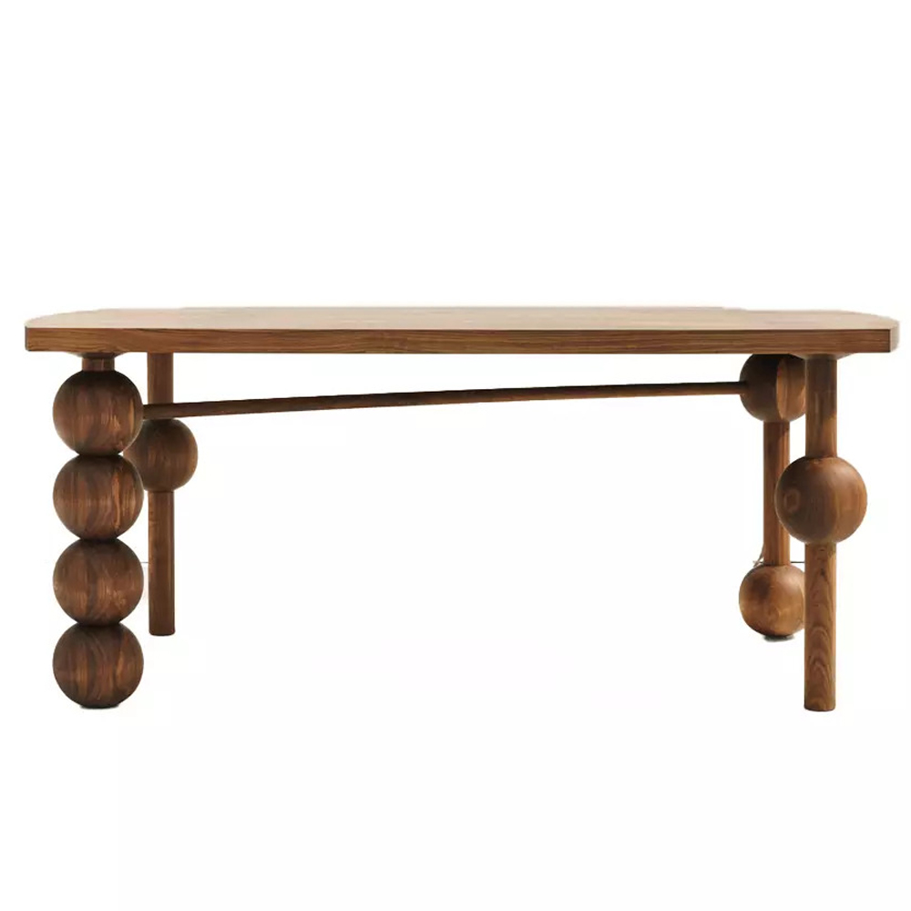 Обеденный стол деревянный с круглыми декоративными элементами на ножках Koko