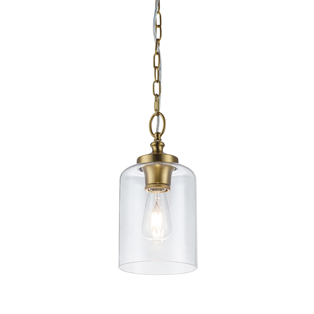 Подвесной светильник латунного цвета с прозрачным стеклянным плафоном Feiss Прозрачное Стекло Латунь в Твери | Loft Concept