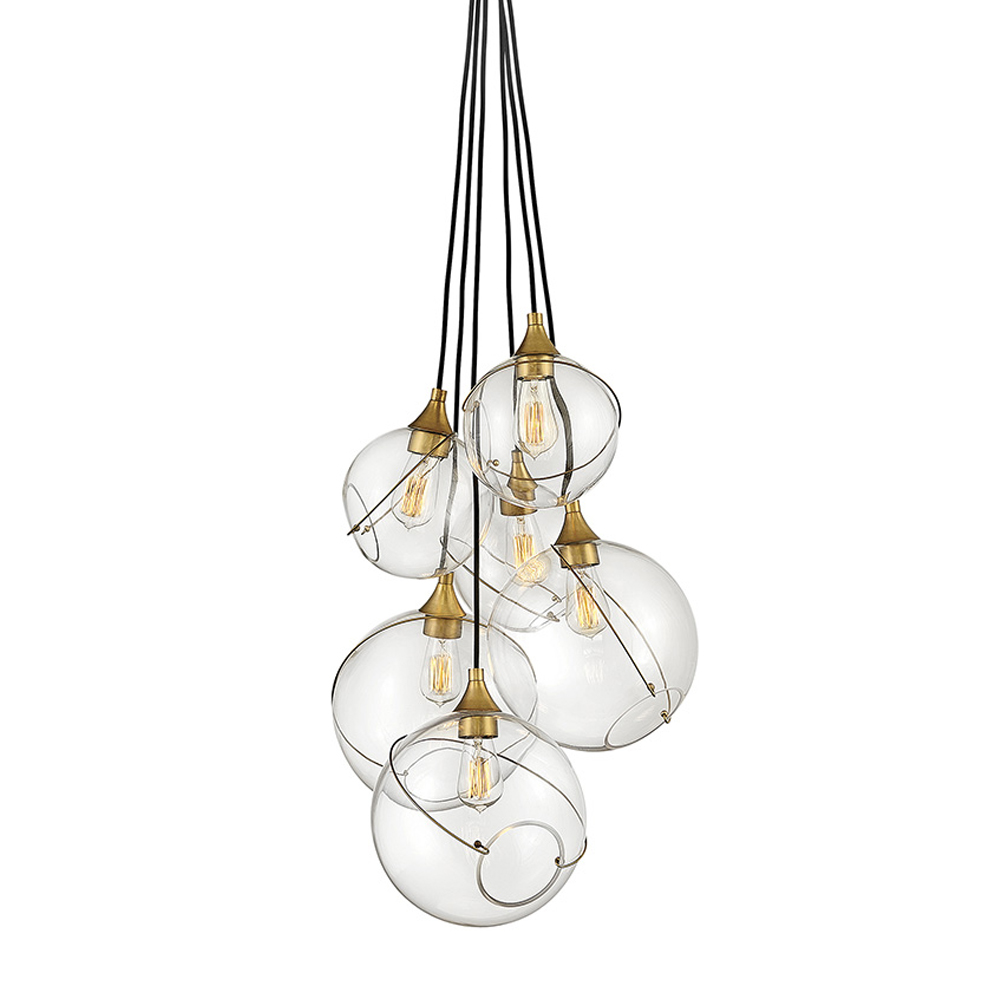 Подвесной светильник с шестью прозрачными стеклянными шарообразными плафонами Hinkley Латунь Прозрачное Стекло в Твери | Loft Concept