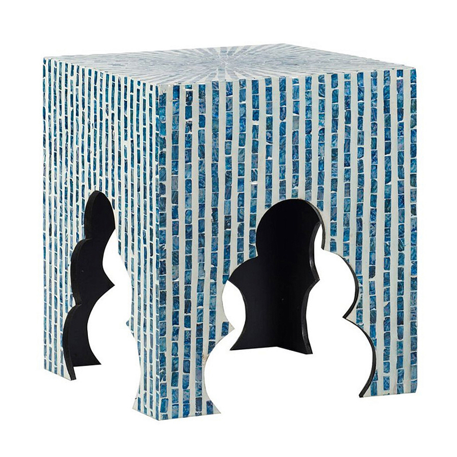 Приставной столик с инкрустацией раковинами устриц Bone Inlay Белый Синий в Твери | Loft Concept