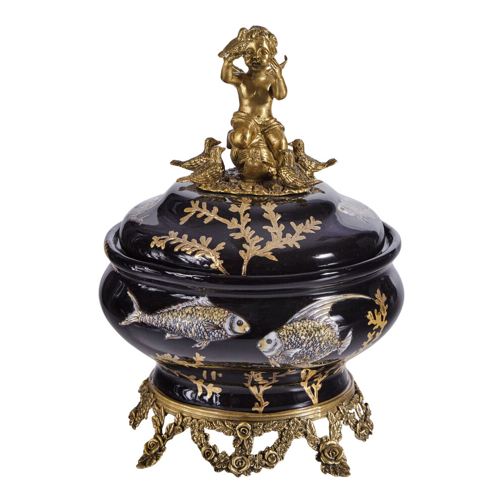 Шкатулка черного цвета с бронзовым ангелом Eden Garden Черный Бронза в Твери | Loft Concept