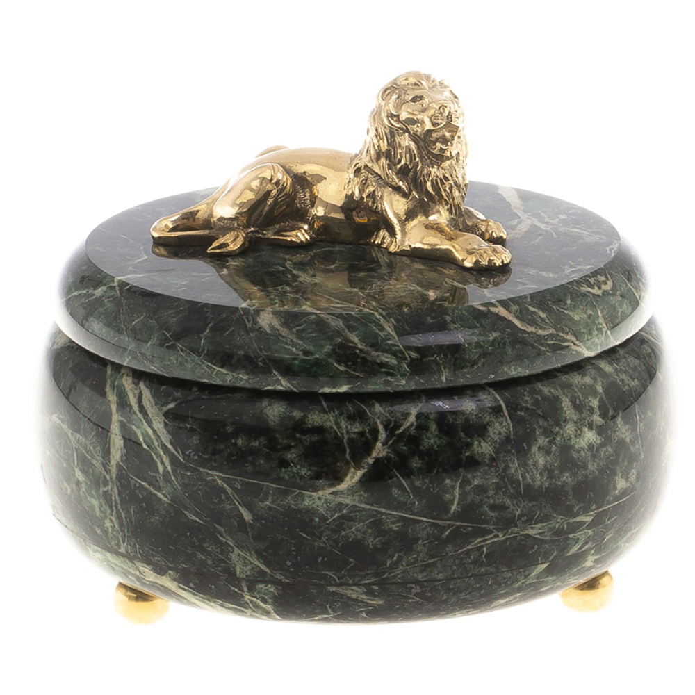 Шкатулка из натурального камня змеевик с фигуркой льва Stone Casket Змеевик Бронза в Твери | Loft Concept