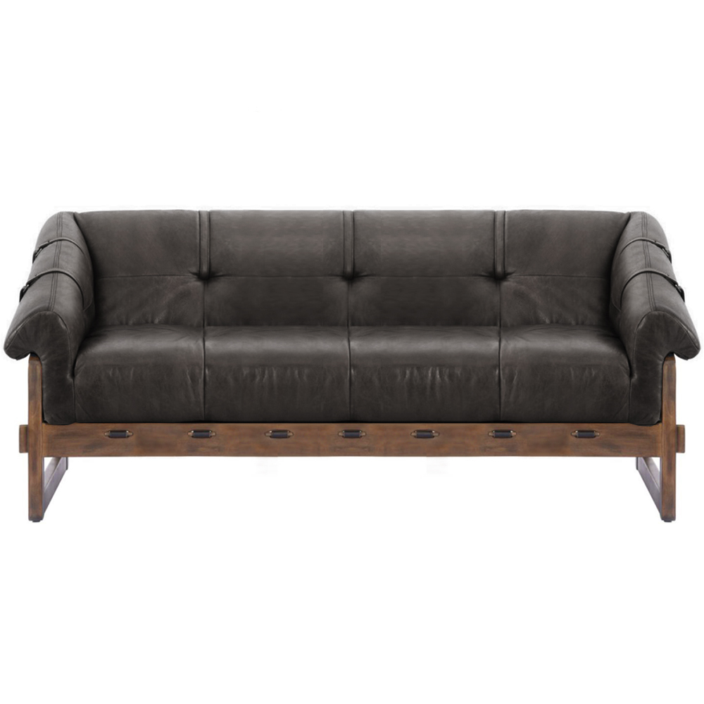 Трехместный диван Duncan винтажная черная кожа Черный Коричневый в Твери | Loft Concept
