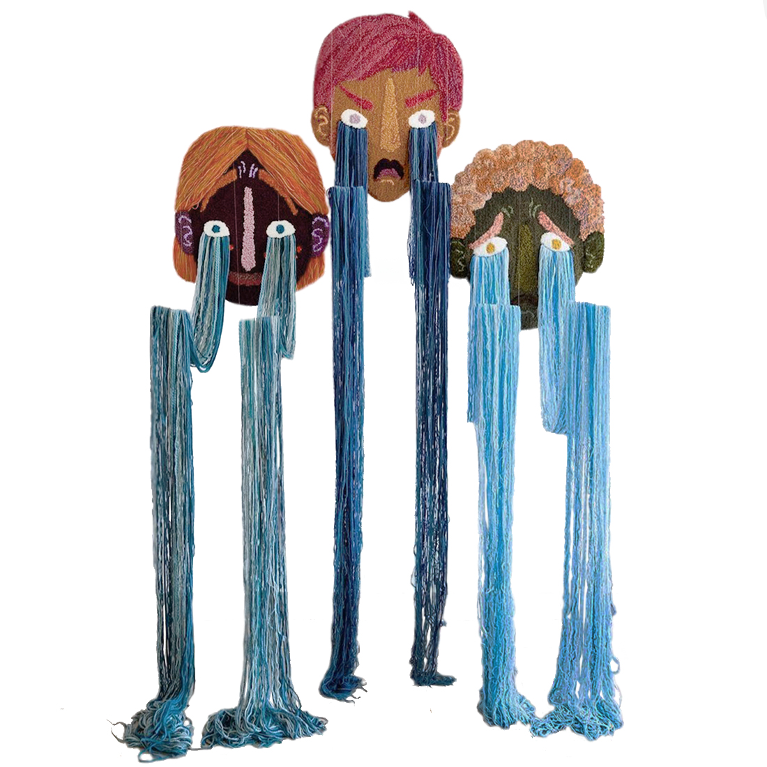 Вязаный Арт-Объект на стену из трех элементов Triptych Терракотовый Синий в Твери | Loft Concept